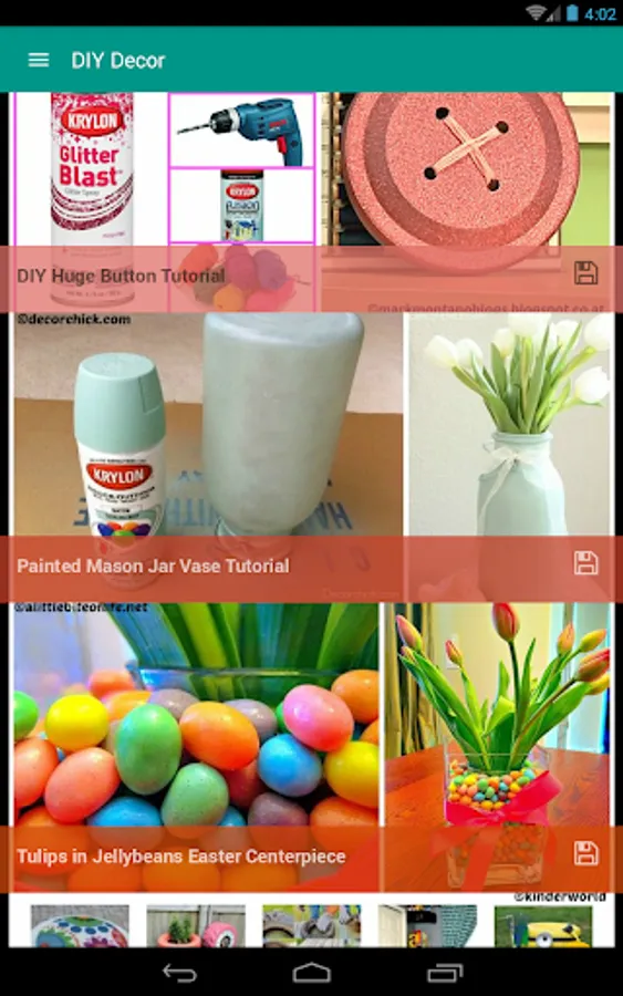 Even if you just use it to clear your mind at work, or don't have a gift idea, or have an item you love and don't want to throw away, or you want to design a room with low budget, DIY Decor Project Ideas is a great playground. You can never get bored.