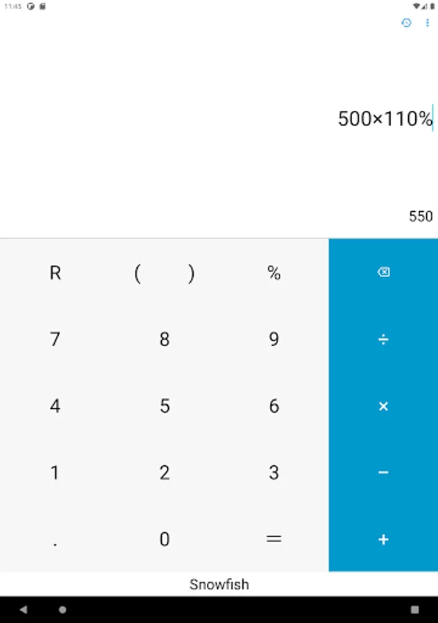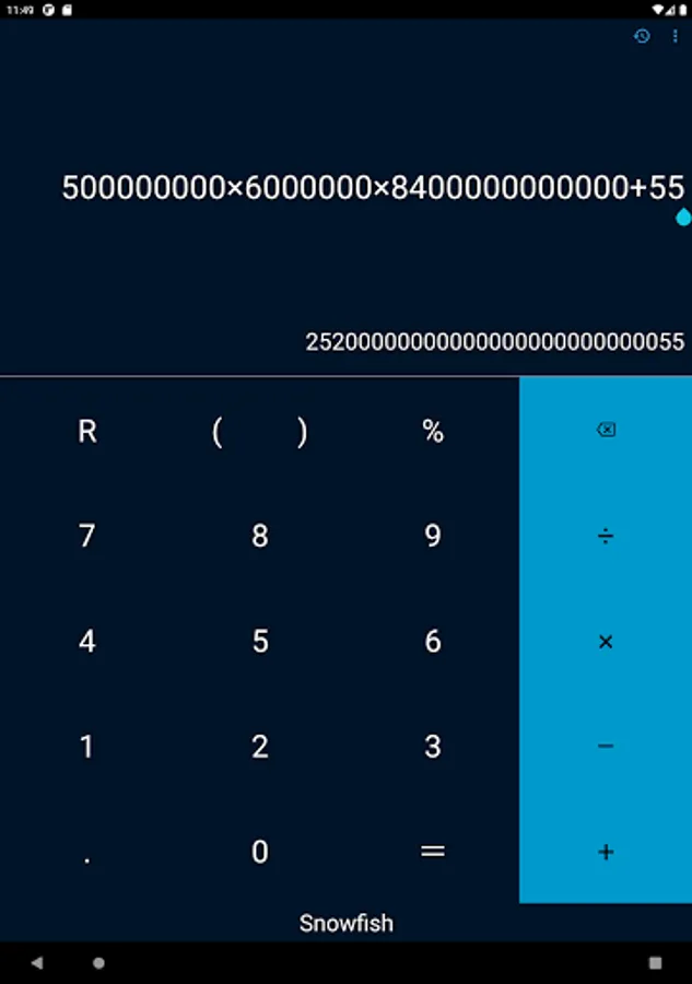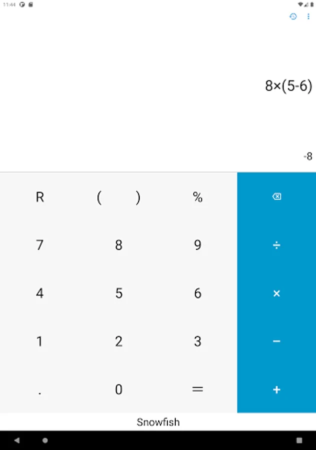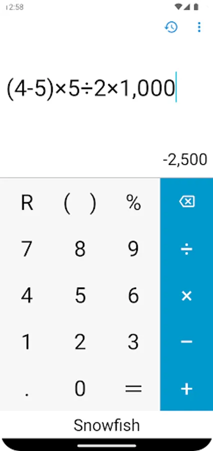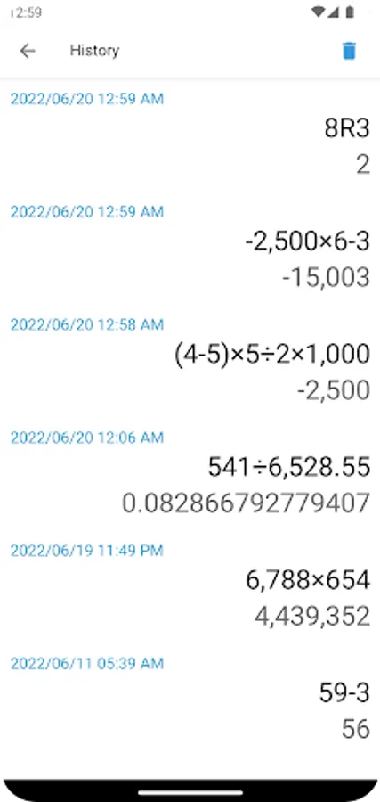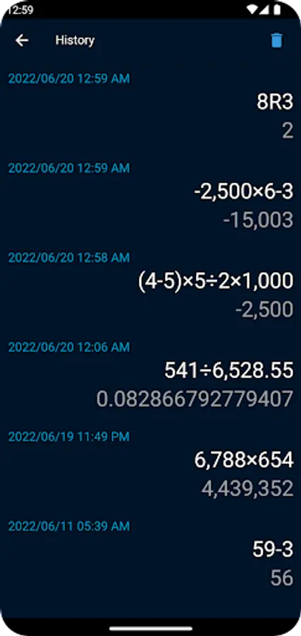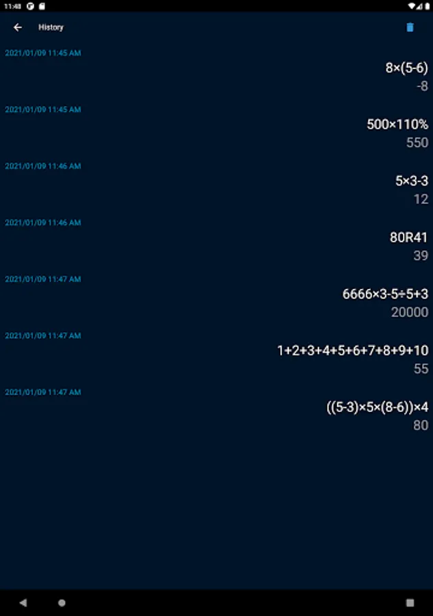 Multiple calculations in sequence can be done seamlessly, with previous ones being displayed like so: 1 + 1 = 2 - 4 + 3 = 1. This way you can go back and check all of your results quickly, and fix mistakes more efficiently with the Delete button. You can calculate remainder too.