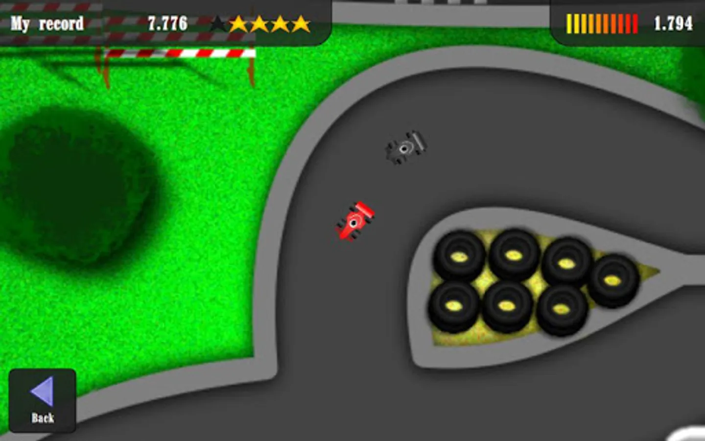 Make the racing car follow your finger around the track and cut corners for faster times.
