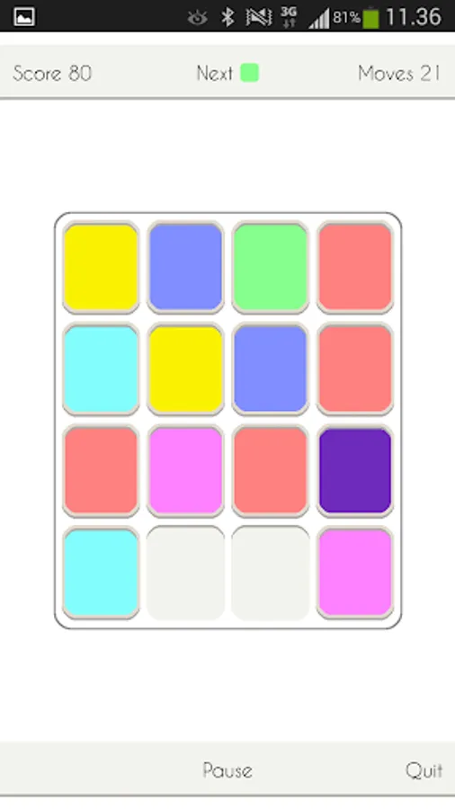 There are 7 colors That were chosen to fit elegantly into each other. This makes a compelling gameplay That feels wonderful and looks good.