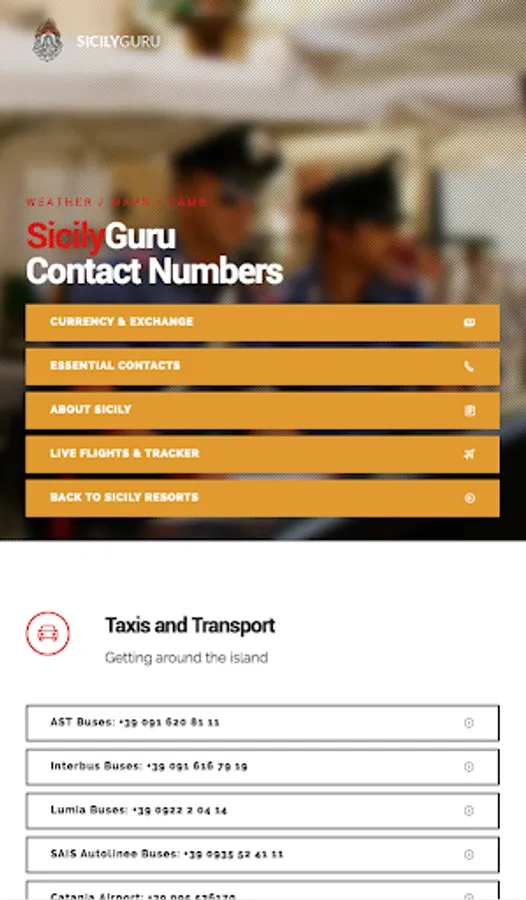 Essential Sicily contacts: Phone numbers for Sicily taxi and transport links (Sicily buses and Sicily airports), emergency numbers and contact details for foreign consulates.