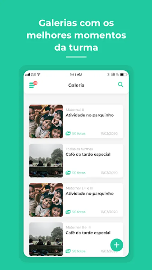 You can create a gallery and record the best moments of the activities, for parents and guardians to stay on top of everything that is happening at school.