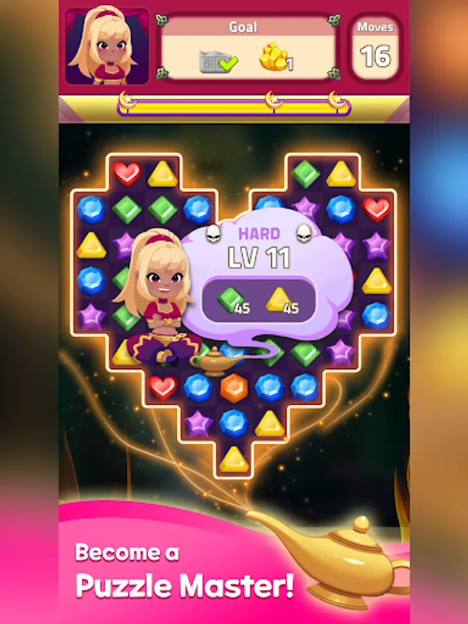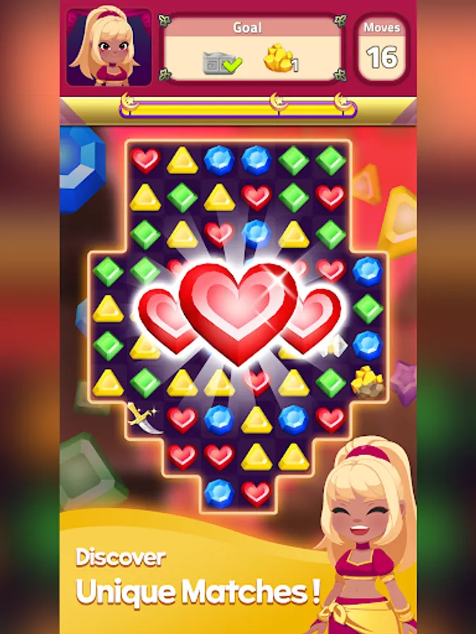 Get on the Magic Carpet Now🔥! It will take you to a magical jewel world filled with exciting puzzles and challenging match 3 games!