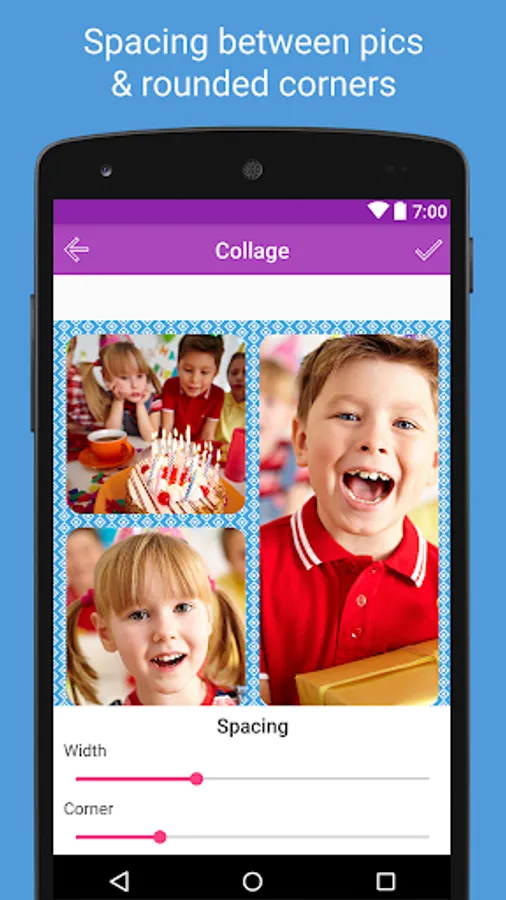 6. Photos can be adjusted to frames by Rotate, zoom in, zoom out and move with your fingers