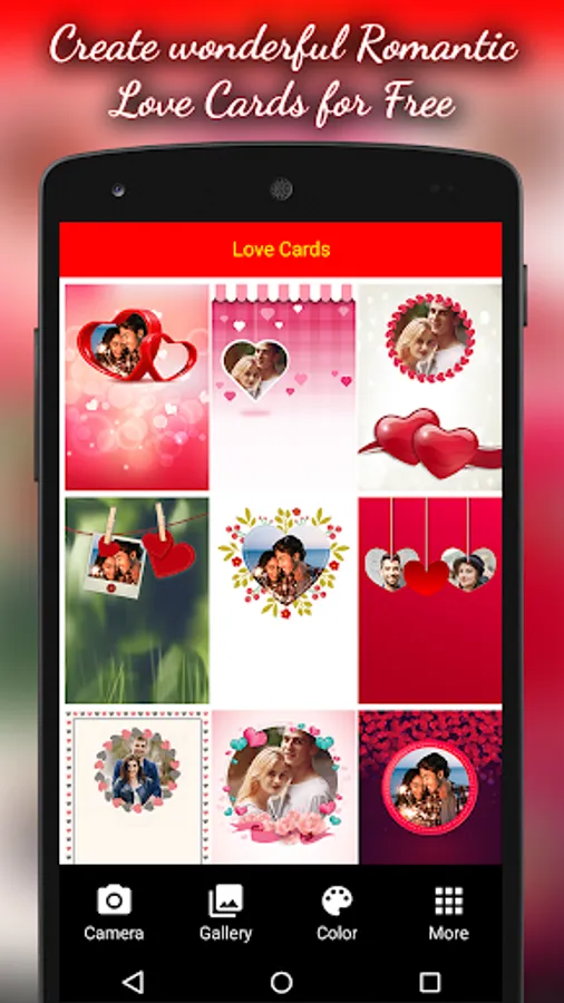 01. Select a “Love Cards“ from bunch or Pick image from gallery or capture image from camera or select color from color picker.