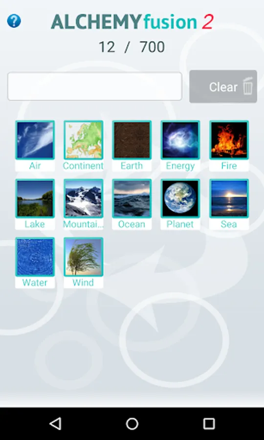 Since the dawn of time, Earth, Fire, Air and Water are the elements which are the basis of everything that surrounds us. Now you can harness these elements and create the world from scratch. It is you who decides! Alchemy Fusion 2 is an amazing game of rules known from "Alchemy" and "Doodle God". With Alchemy Fusion 2 you may impersonate explorers and you have a great chance for adventure. Gorgeous graphics and amazing effects of Alchemy Fusion 2 make the journey even more pleasant. Start your expedition from the 4 basic elements: water, fire, air and earth. It is only you who creates the further fate of the game! If you have any doubt, you can always take a hint. You can get them for the discovery of new elements or choose a shorter way and simply buy them. Alchemy is a difficult art, check if you can handle it. Do not wait and enjoy your adventure.