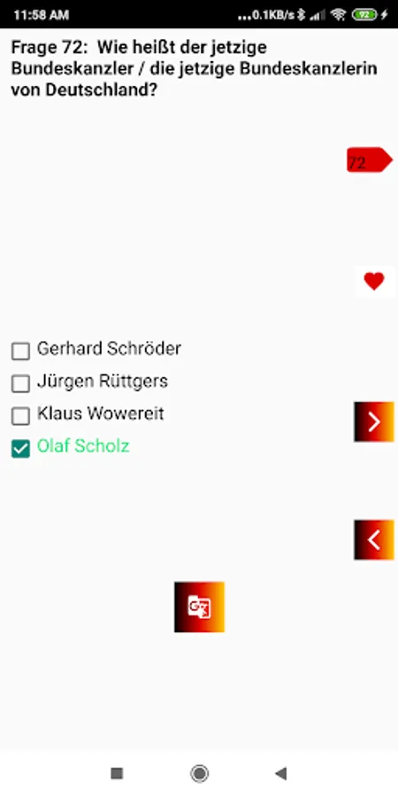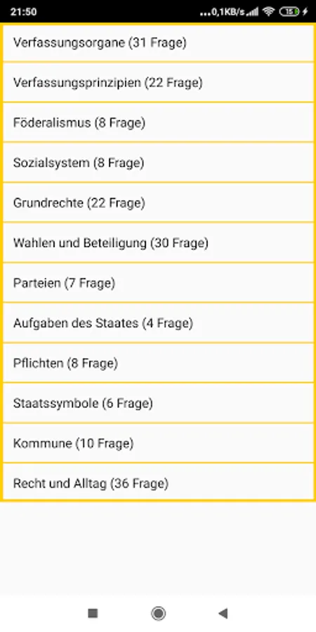 7. Practiced a lot and now want to test yourself, click on Prüfung button at home screen and take the test. Prüfung will be generated randomly with 33 questions in right proportion of common and Bundesland questions.