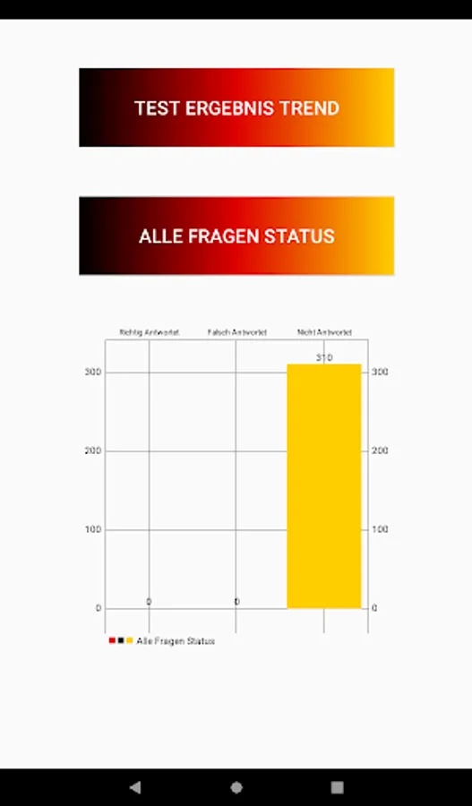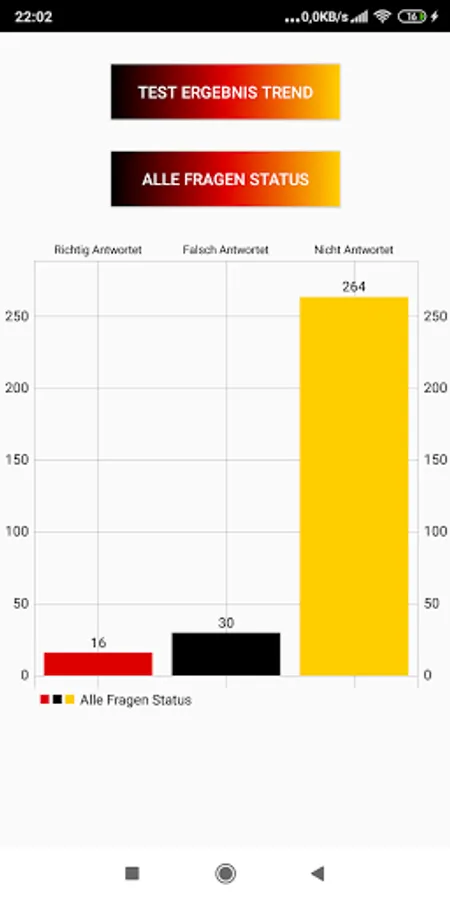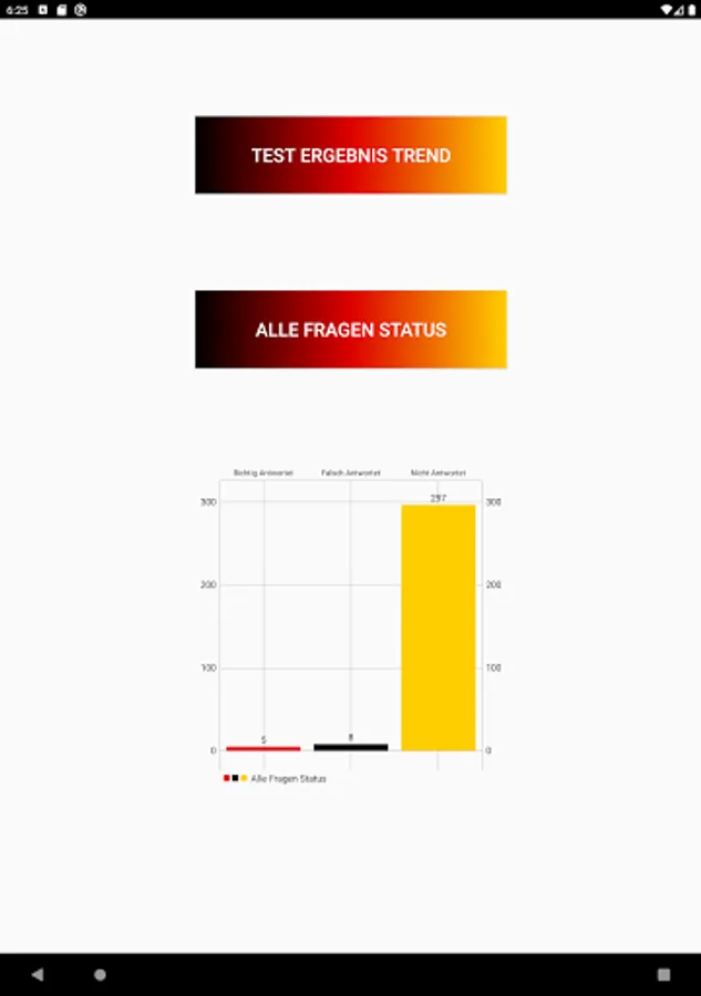 9. Want to see your Prüfung score or overall progress click on Trend button at home screen and select "TEST ERGEBNIS TREND" or "ALLE FRAGEN STATUS".