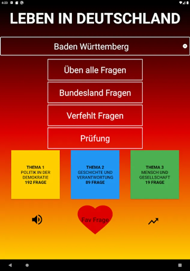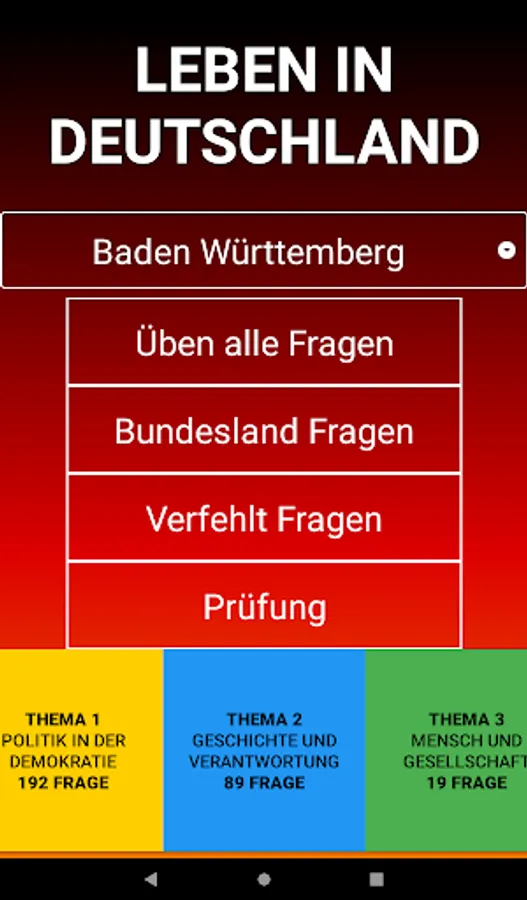 4. You can separately practice only Bundesland questions by clicking "Budesland Fragen" button at home screen.