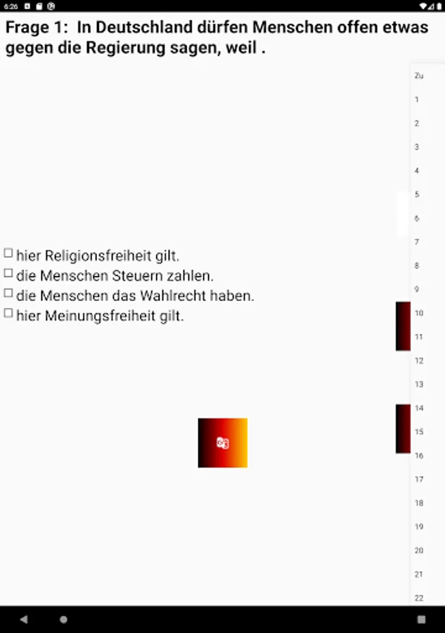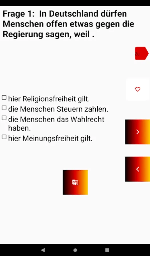 Diese Applikation ist für Leben in Deutschland/Einbürgerungstest 2022. Die App hat verschiedene nette Merkmale für schnelle und wirksame Vorbereiten.