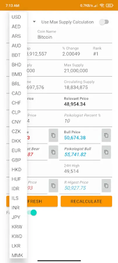 Application to calculate relevant price of cryptocurrency based on coingecko.com API data.