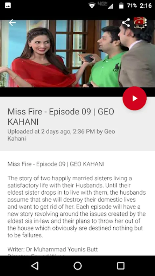 The Official Geo Kahani Application - Watch entire episodes of your favorite classic dramas. Experience high quality streams of old dramas on your phone and mobile devices .With Geo Kahani live 24x7, you never have to worry about missing your favorite shows. Catch up on any thing you missed earlier by viewing full-length episodes. Also remain connected with us by having Geo Kahani social media posts across Facebook and Twitter from within the app.
