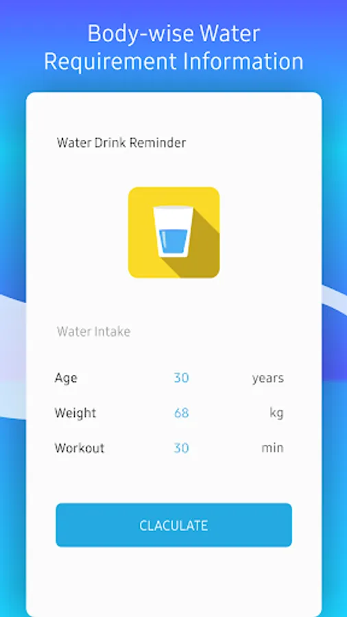 Just enter your current weight, and Water Drink Reminder will help you determine how much water your body needs every day. Remember to update the app each time you drink a cup of water. Hydration helper not only tracks what you drink, but also reminds you when it's time for another drink.
