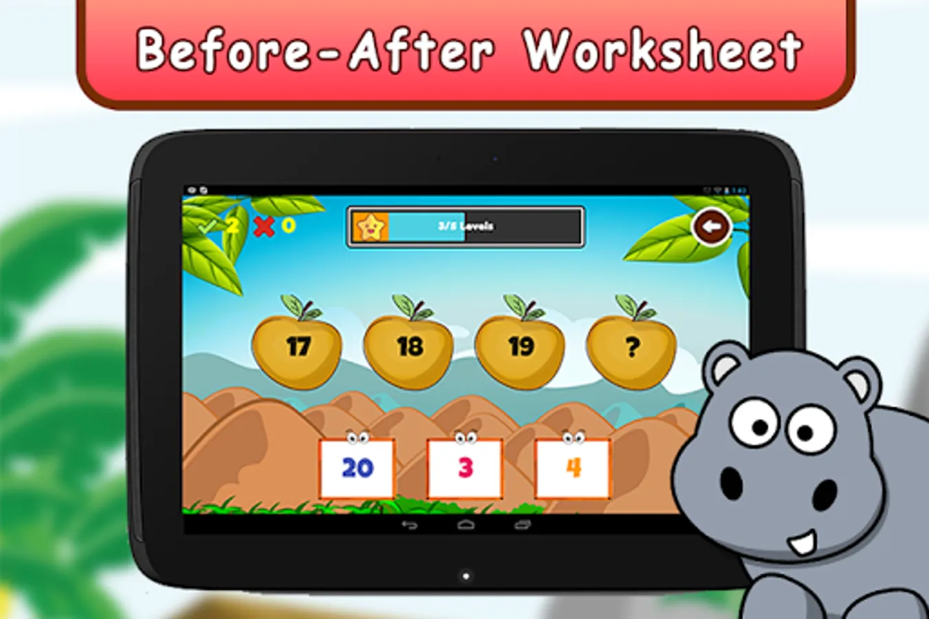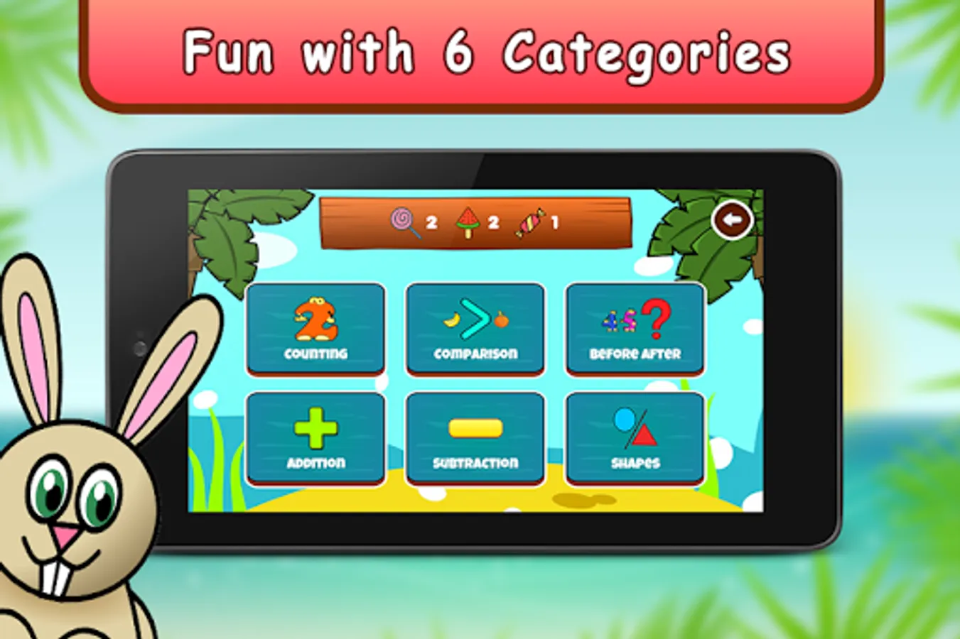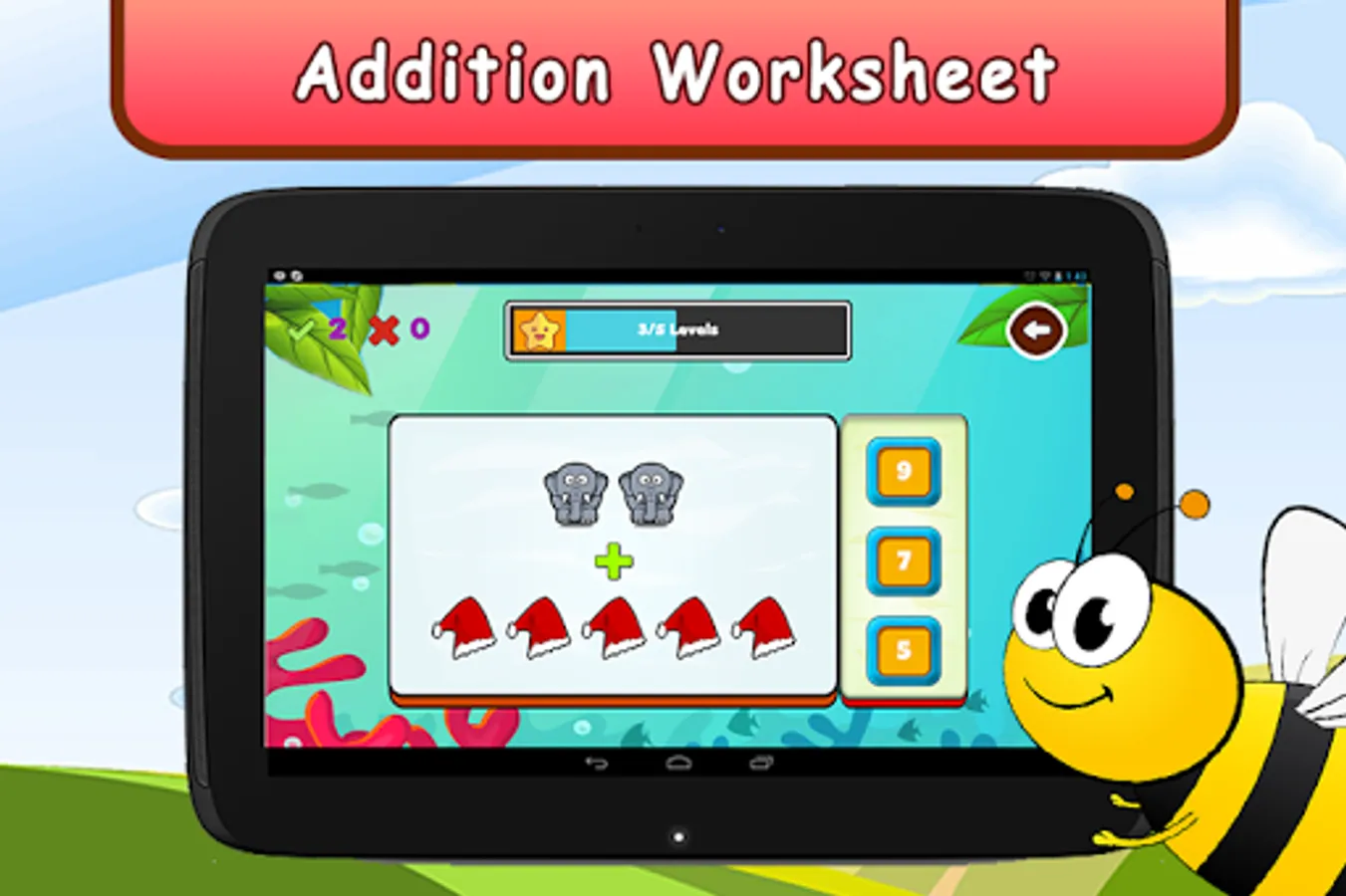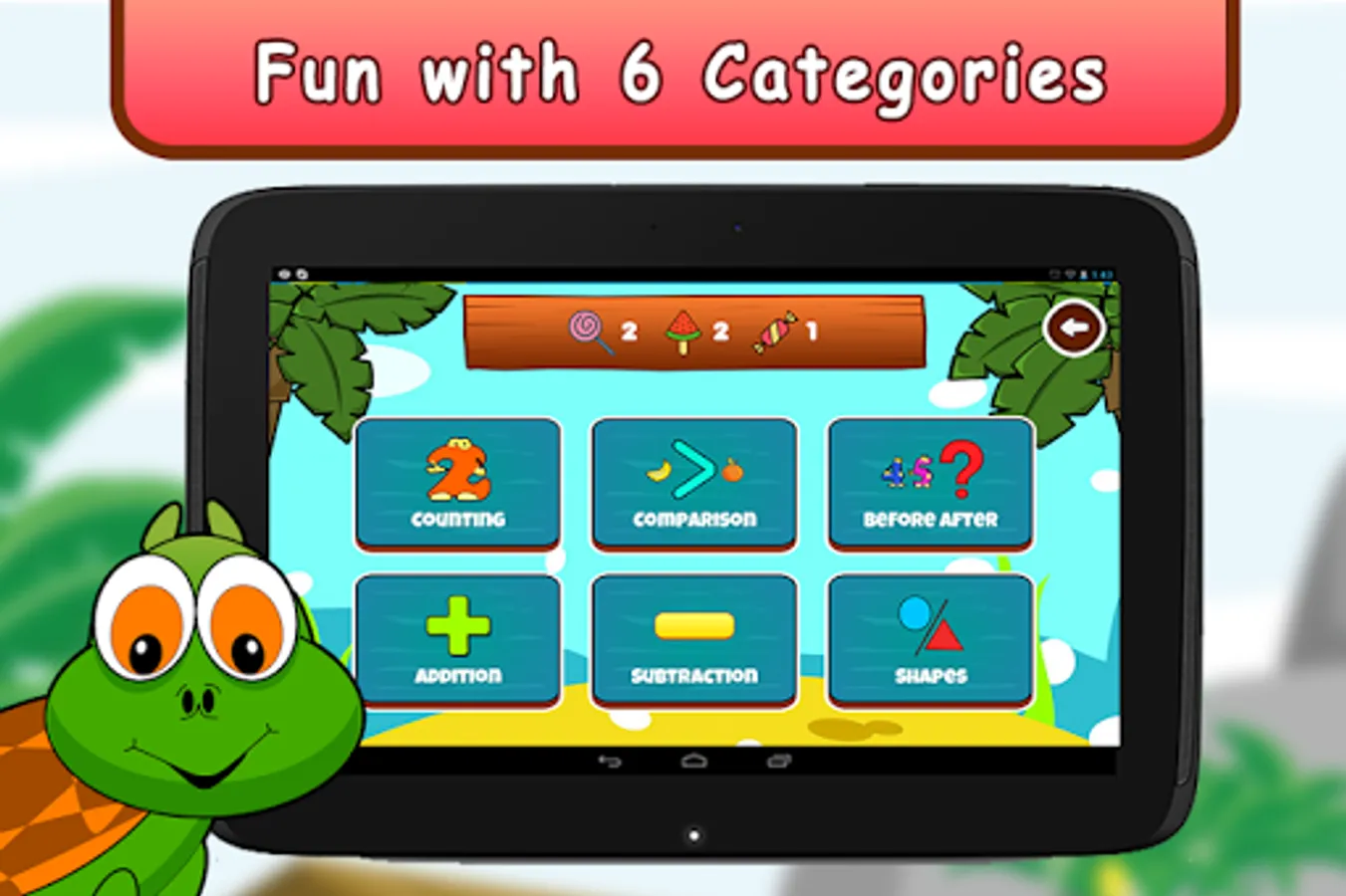 It is specially designed for Pre-Schoolers, Kindergartners and First graders.This game focuses on making numbers counting and maths learning easy for kids.This game is completely curriculum oriented featuring several worksheets for mathematical concepts.Solving worksheets with interactive graphics keep child's interest in learning.It features several free math games such as addition and subtraction games which your child will to play and thereby improve math skills.