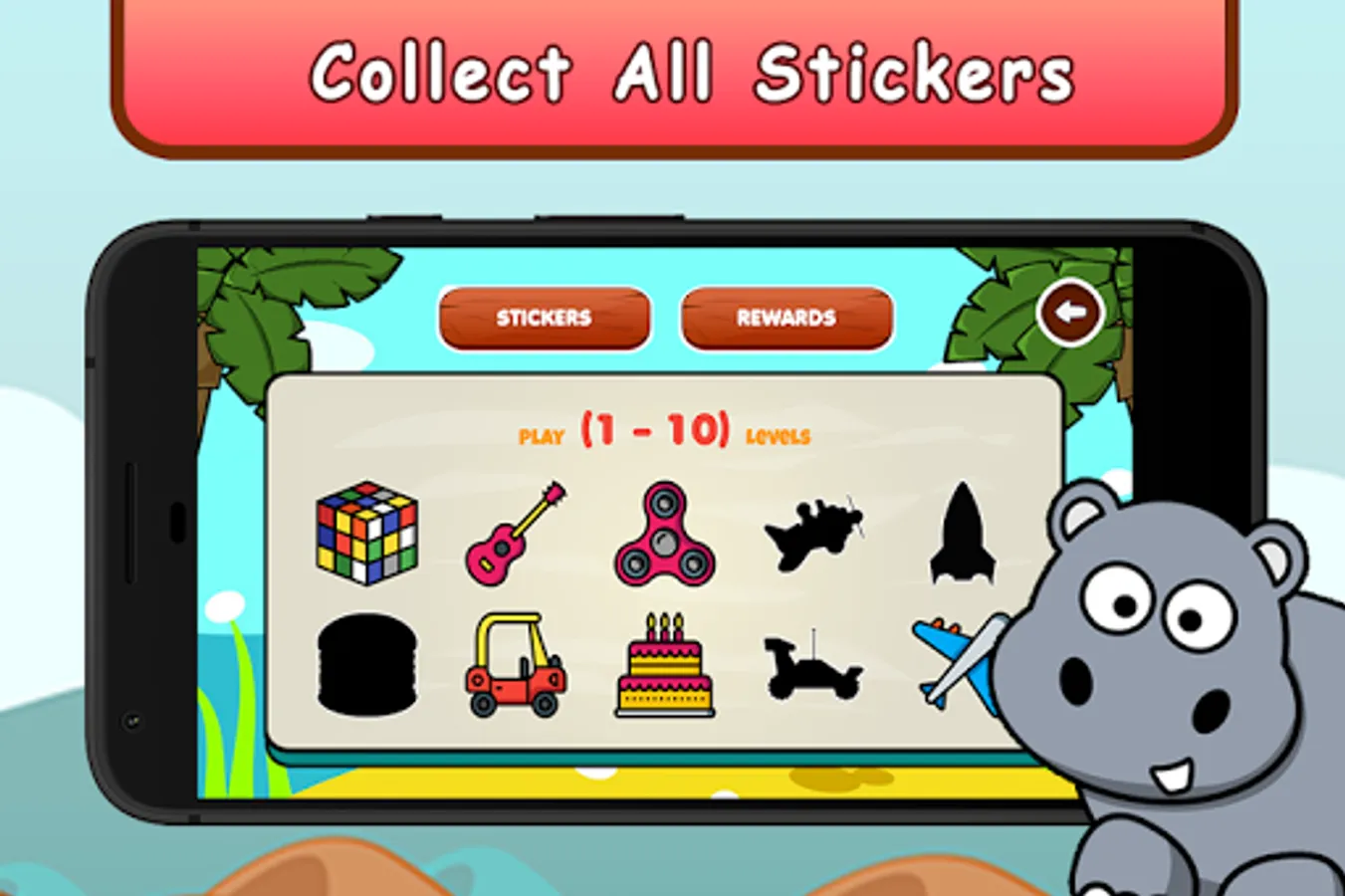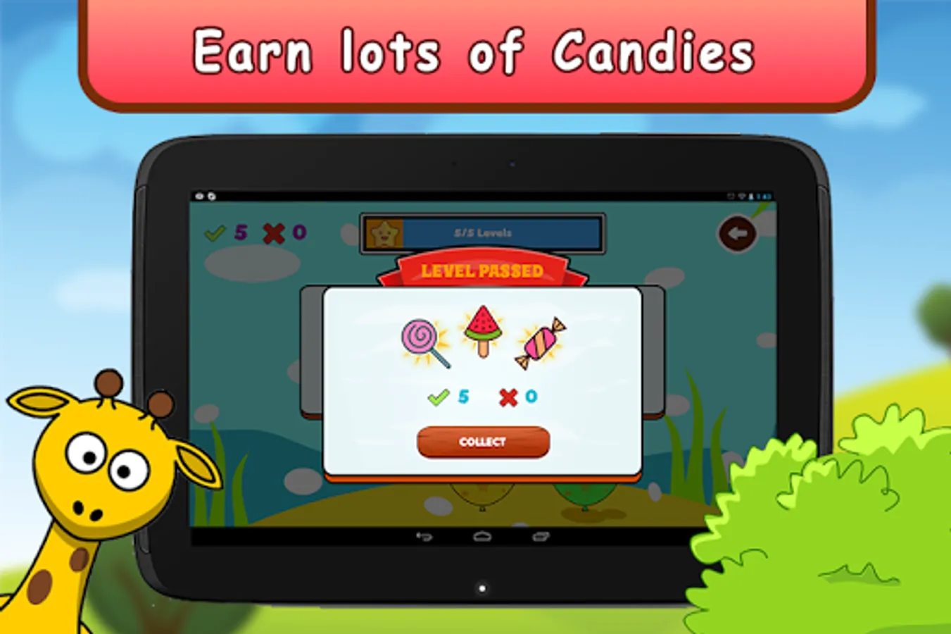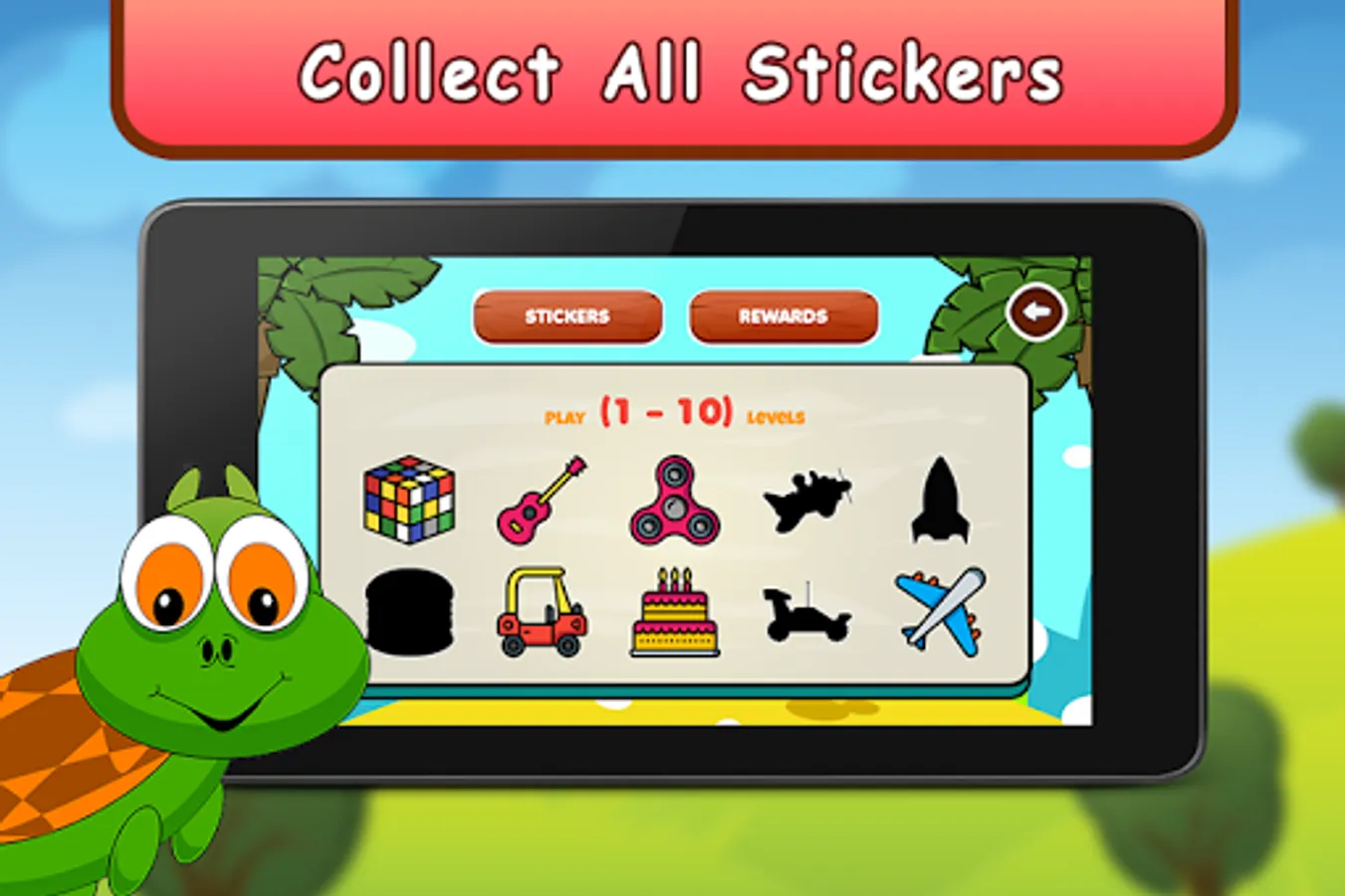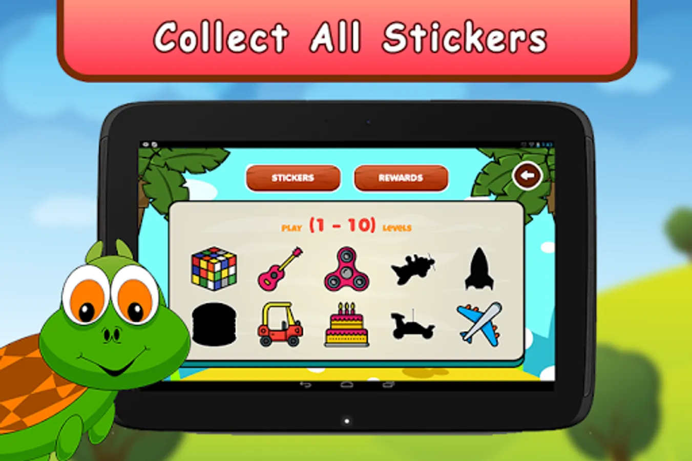 Your task is to unlock levels using the candies earned in practice mode. Each level includes an interactive puzzle with awesome graphics. On Completion of each puzzle an amazing sticker is rewarded. You need to collect all the 40 stickers by unlocking all the levels in the game mode. This sticker based game adds an additional fun to the game and helps to keep child's interest in learning.