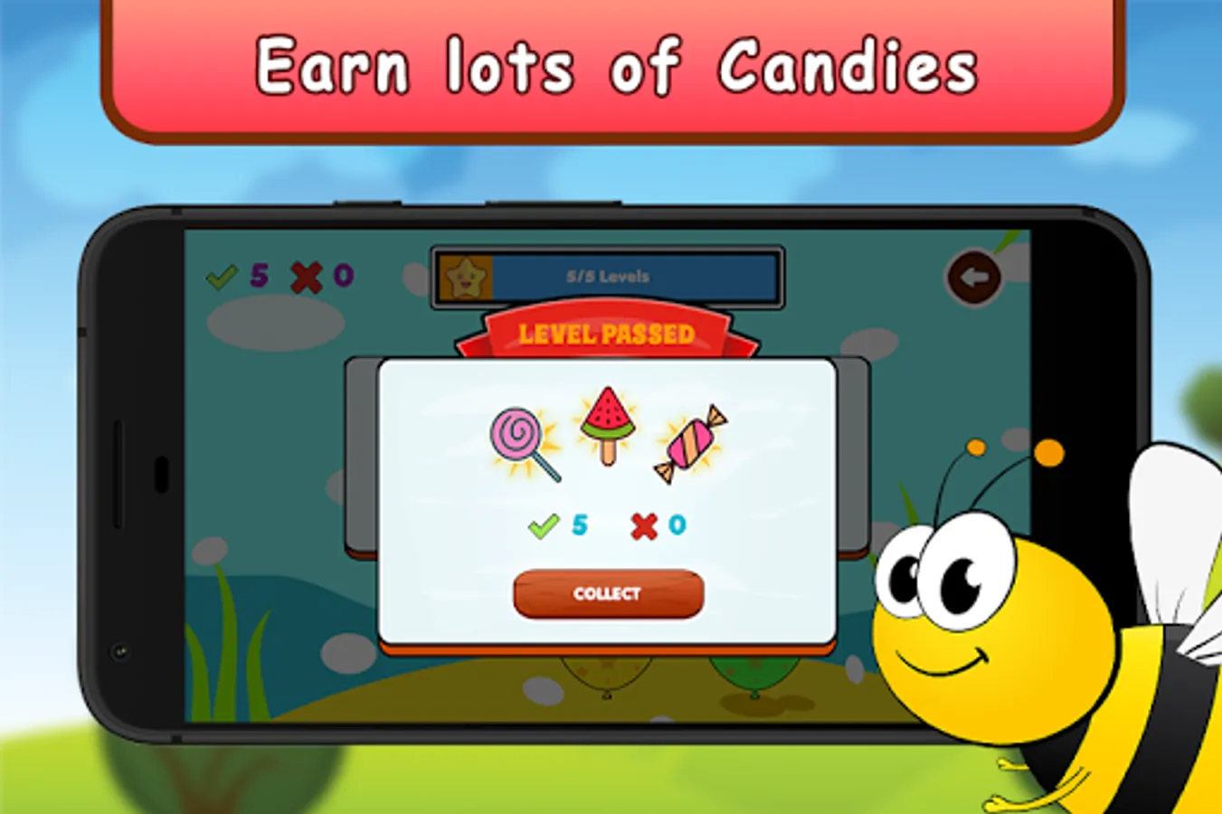 Kids Math game includes three types of candies as rewards. Your task is to earn candies by solving worksheets.