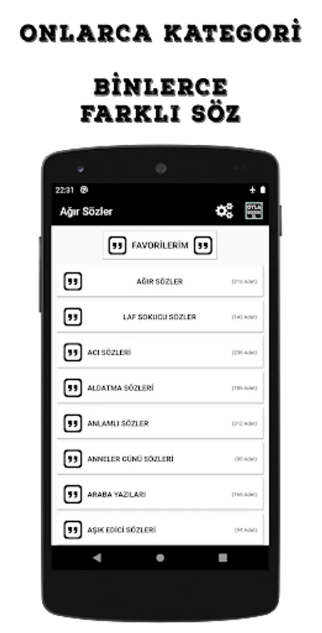 The Heavy Words application can be used easily anywhere with the offline lyrics feature. Here are some of the toughest Rubbish Words. In addition to all these, you will have a rich content with Meaningful Words and Status Words. While your fun is at the top with Funny Words in the application, it is always at your fingertips to be ready with Kandili Messages and Holiday Messages with thousands of words from tens of categories.