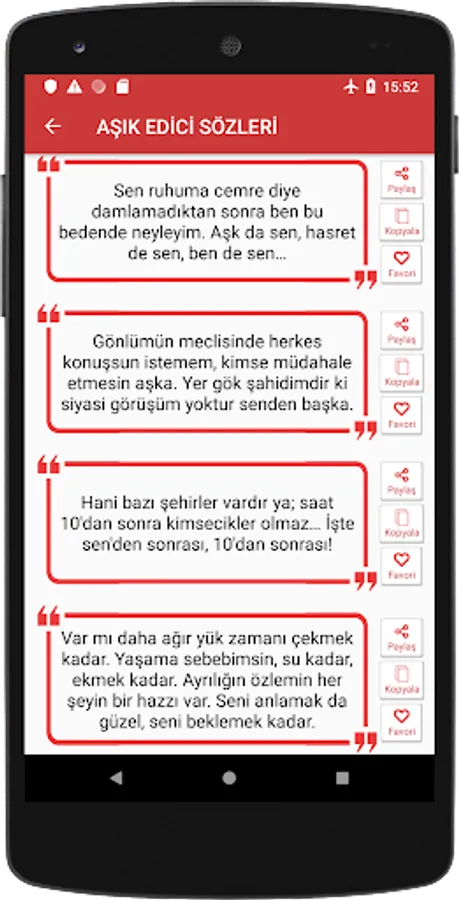 Your feelings will rise with Love Words and Meaningful Words. Use Status Quotes and Beautiful Quotes app and never have to waste your time between empty content on the web. Get the chance to always be ready with Laf Sokan Sözler.