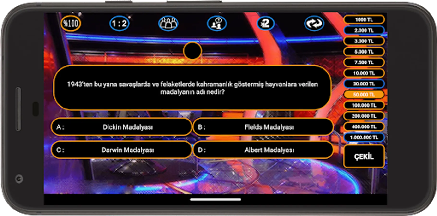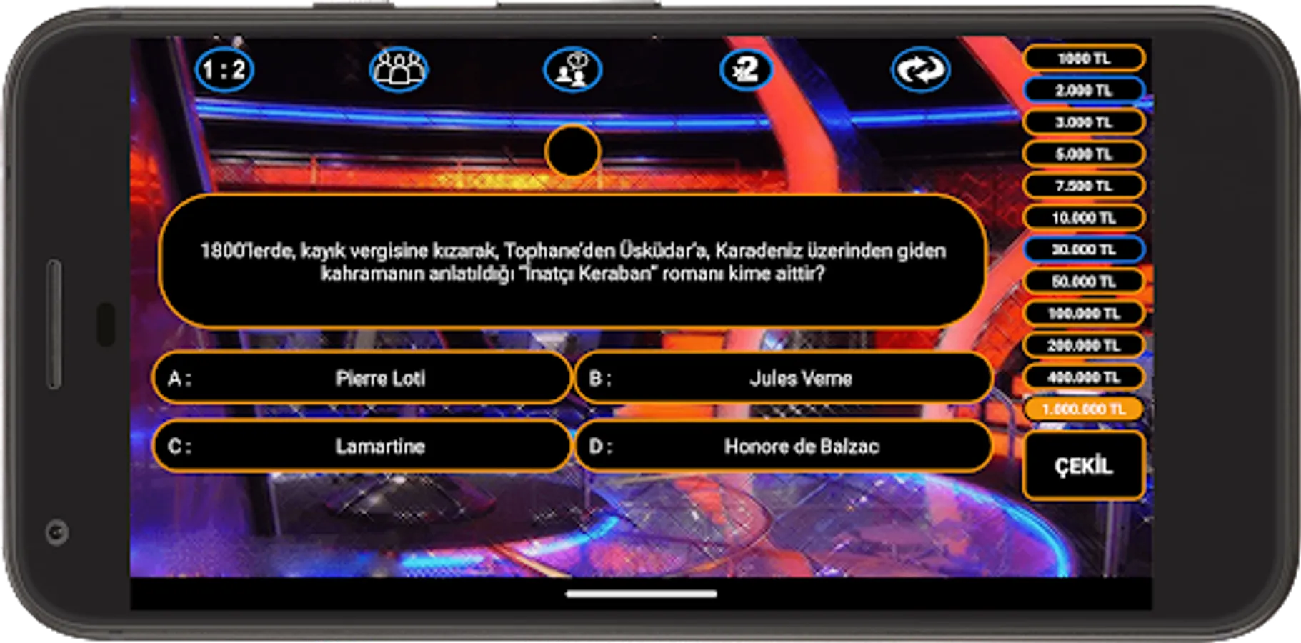 We are here with the newest Kim Millionaire game. The application is the unofficial android version of the millionaire contest we all know. The world's best and most known question and answer game: Who is the Millionaire quiz. It is the first game that comes to mind when it comes to competition in Turkey. The latest among the current games, the fun of competition with the best intelligence questions. Indispensable for quiz lovers' brain logic players. The winner of the competition games!