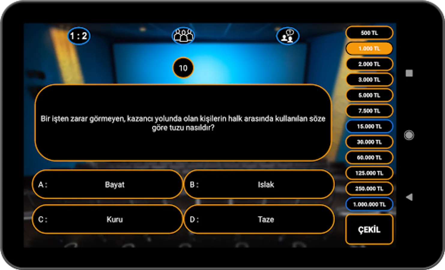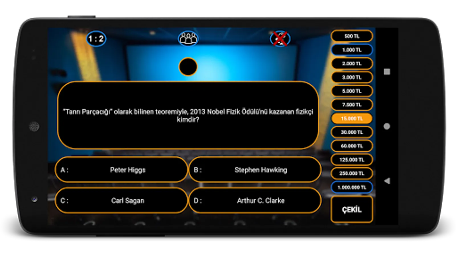 We are here with the most ambitious Kim Millionaire game. The application is the unofficial android version of the millionaire contest you know. Who Millionaire quiz. The first game that comes to mind competition, known in Turkey. The winner of the competition games! The newest among the current games, the best intelligence questions, and enjoy the competition. Knowledge competition