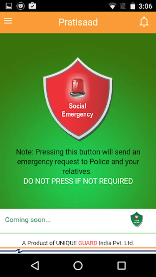 Unique Guard India Pvt. Ltd. introduces a "Social Emergency" application to alert the nearby police of any emergencies such as "terrorist attack", "accident", "robbery", "Women Safety", or any other kind of human rights violation or unlawful activity. This is free application backed by "Maharashtra Police" so help is assured. Just open the app and press a button to call for help.