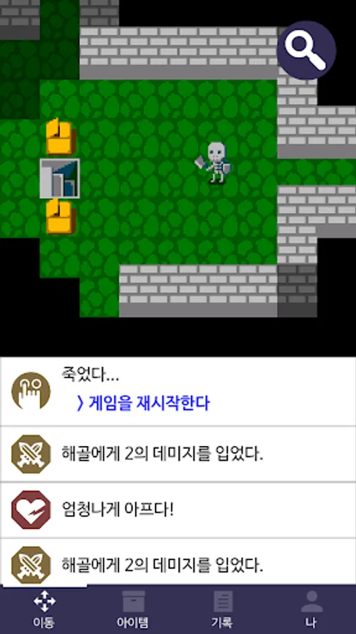 - 화면을 터치해서 원하는 지점으로 이동, 공격 등을 할 수 있습니다.