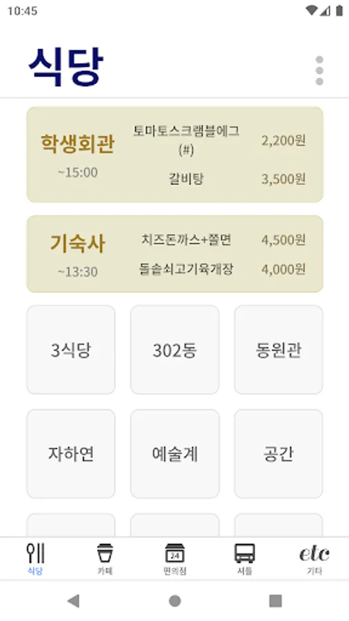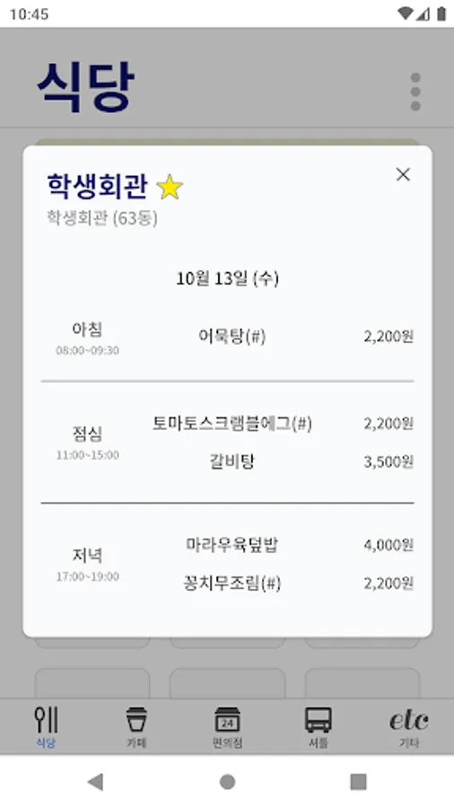 2. Operational information of campus cafeterias, cafes, and convenience stores