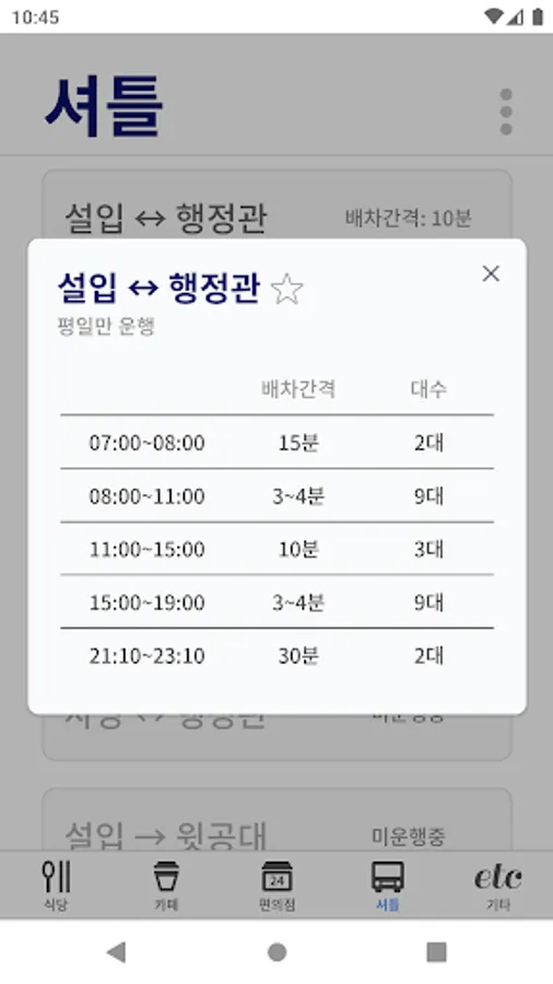 3. Operation information such as the operating time and interval of the campus shuttle bus