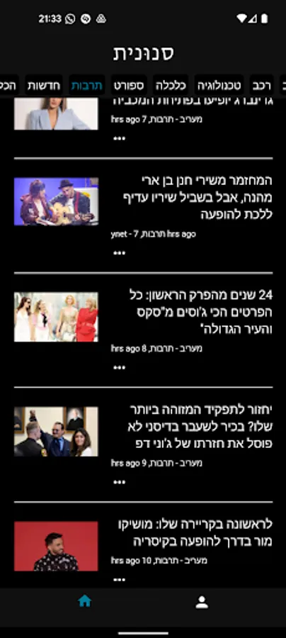 בנוסף ישנה אפשרות למיין את הידיעות לפי קטגוריה.