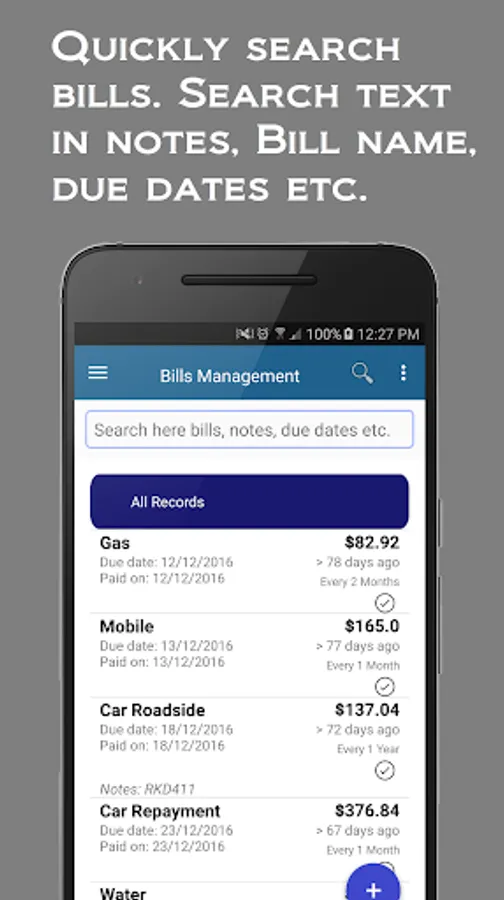 • Search bills using text in notes, bill names, or even search by due dates etc.