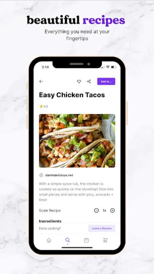 Easily add all your recipes to your shopping list, no matter where they came from.