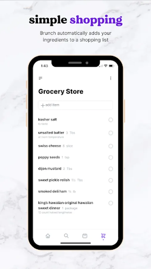 Busy families know that planning meals is the only way to put good food on the table every week. Brunch makes meal planning and meal prep easy. Add recipes to your plan, or even custom items like "basic noodles & marinara." The limit is your imagination!