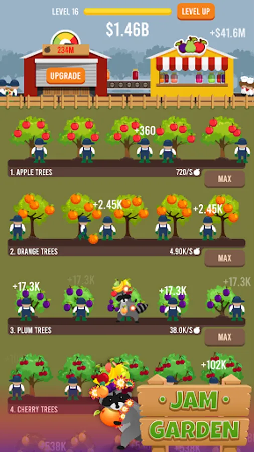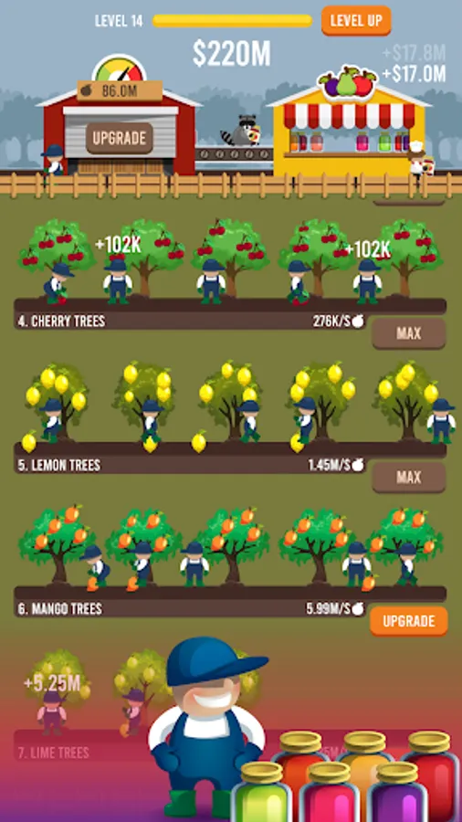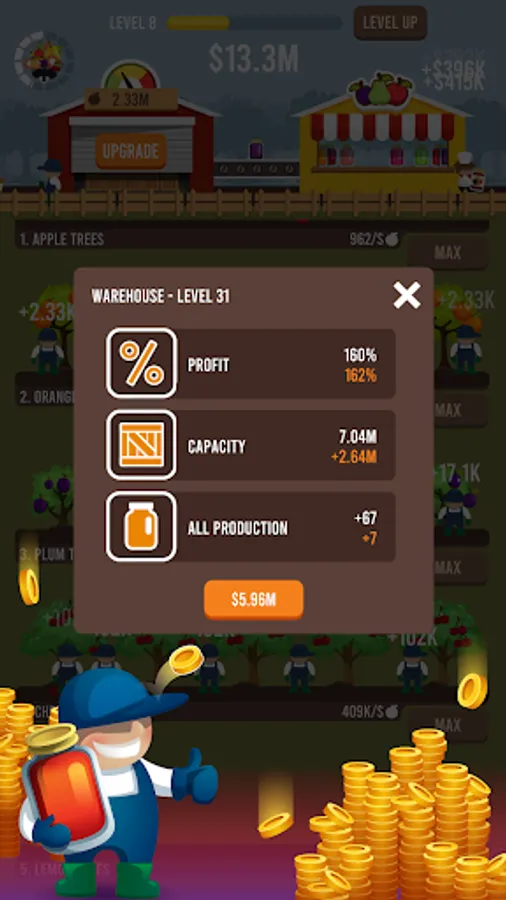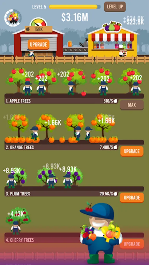 But you need to grow ingredients first. Grow juicy fruits, grow number of staff and watch your money grow!