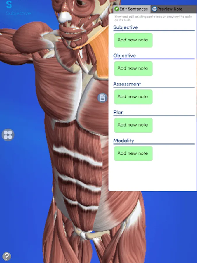 · Tap and identify in 3D the discomfort & treatment areas in multiple layers of the body - skin, 3 layers of muscles, bones, and joints. Add Pins to a 3D body!