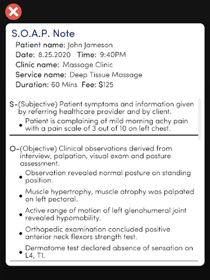 Ideal for rapid preparation of detailed professional Soap Notes for yourself, clinics, lawyers, and insurance companies (e.g. auto accident claims).