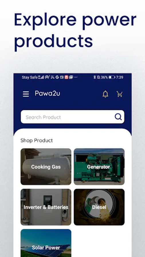 Pawa2U is a service solution that provides door to door service delivery of all basic power and energy services ranging from diesel, cooking gas, inverters, generators, and solar power systems. Pawa2U is designed to ensure seamless ordering, delivery and installation process of power and energy services at a competitive price with the best quality assurance.