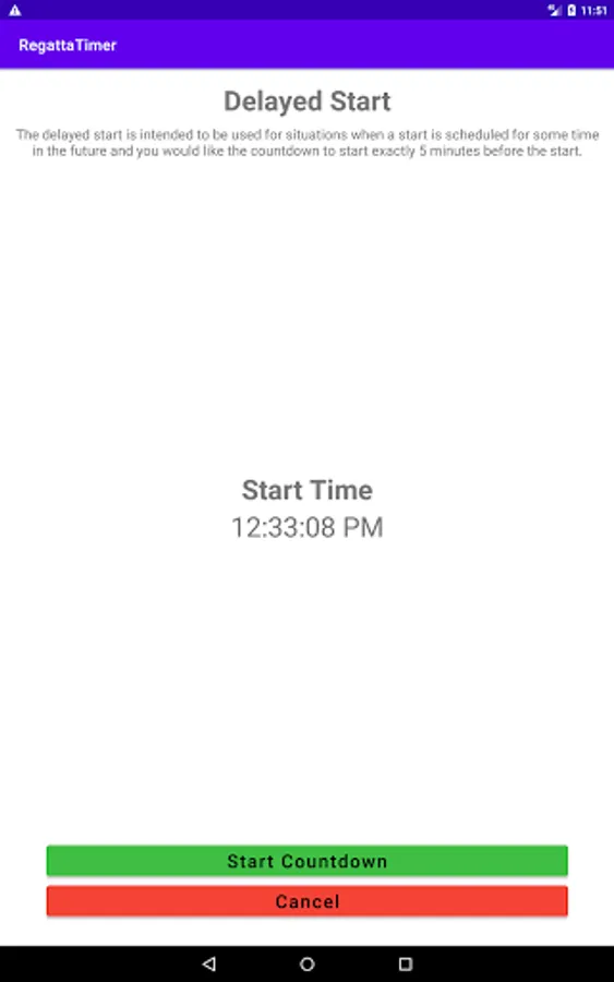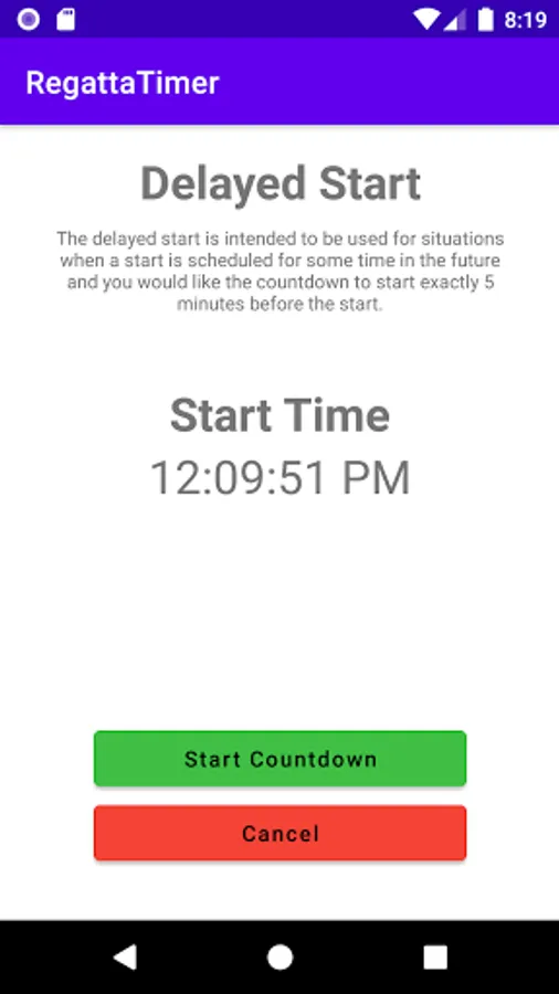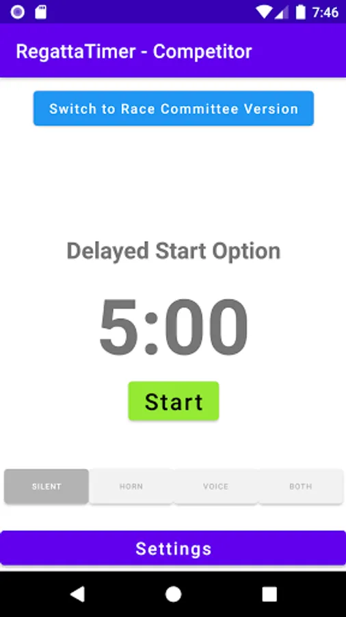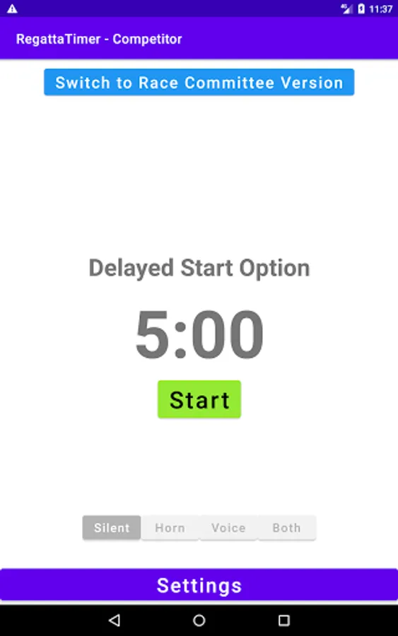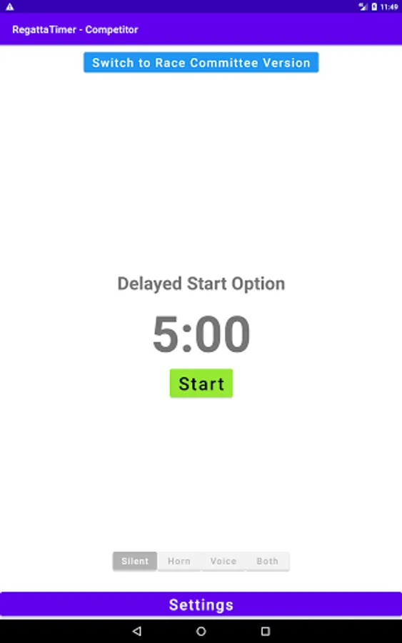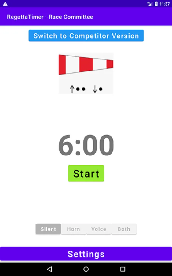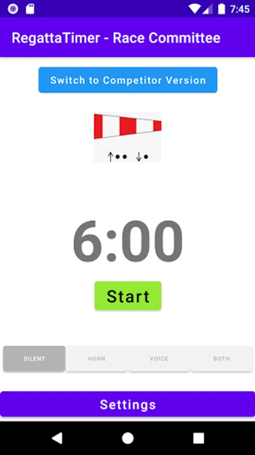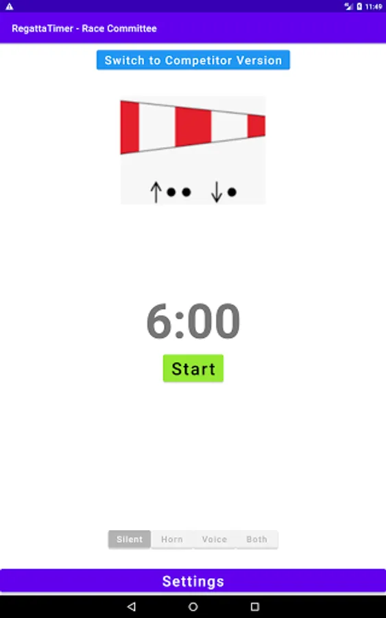 Countdown Timer intended for race committees and competitors of sailing regattas. The timer offers and 5-minute and a 3-minute countdown sequence with (6 or 4 minutes to first start, respectively) and without the AP Flag (5 or 3 minutes to first start, respectively) and optionally provides air horn and voice countdown.