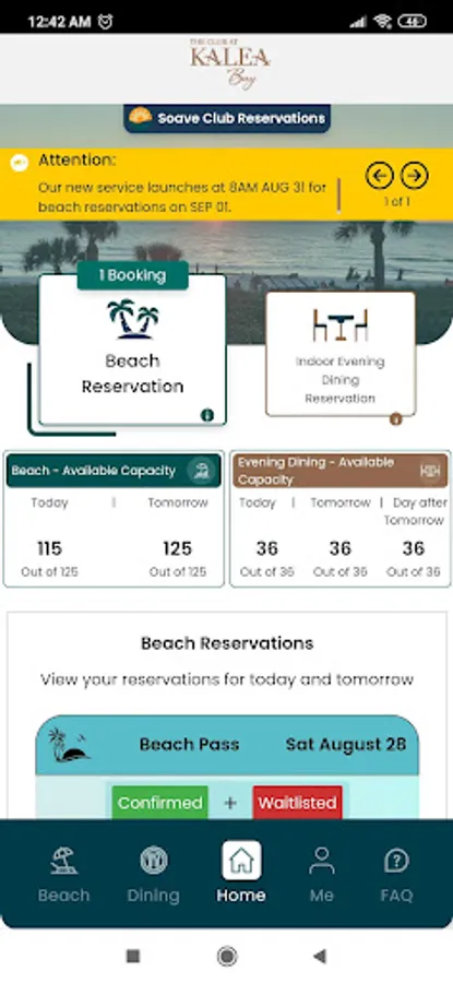 Get notified on the app of any announcements or closure rules that are defined by the Club Staff for beach or evening dining reservations