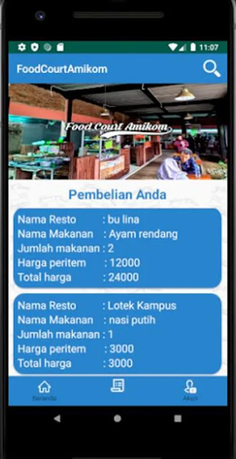 * can search for food and drinks that you want to order at Amikom FoodCourt.