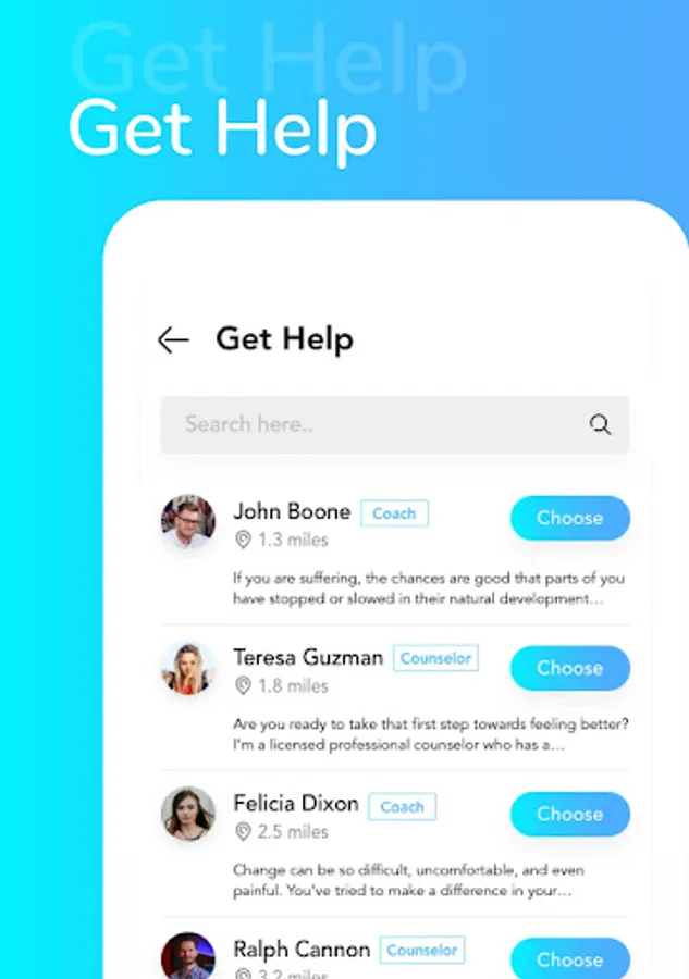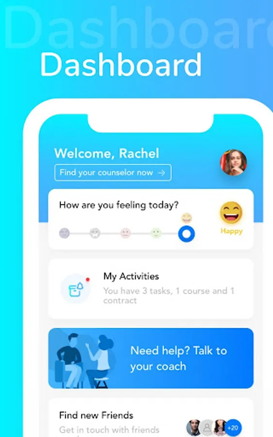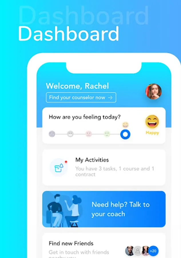 The patient app offers a mobile, on-demand connection with their provider and provides real-time accountability with required engagements and geo-fencing. It also fosters peer, family and friend support and engagement.