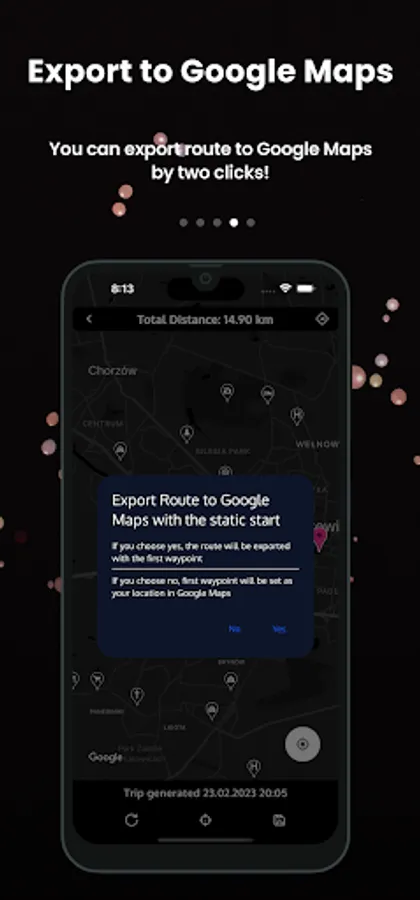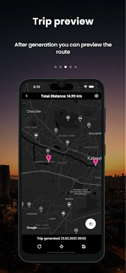 🚀 The app will then generate a unique trip route just for you with a distance around your desired distance.