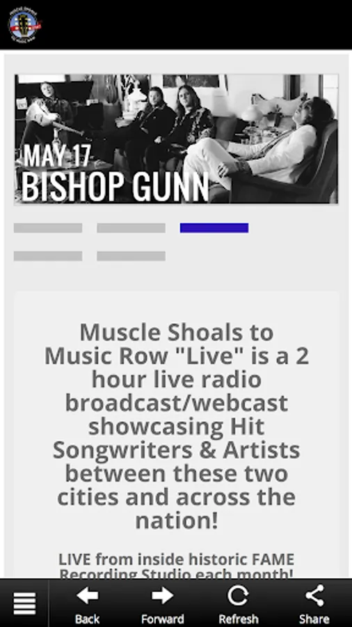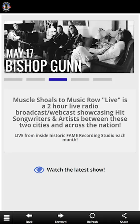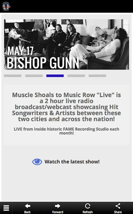 Muscle Shoals to Music Row "Live" is a 2 hour live radio broadcast/webcast showcasing Hit Songwriters & Artists between these two cities and across the nation! LIVE from inside historic FAME Recording Studio each month! Now you can watch the show live and on demand through our app!