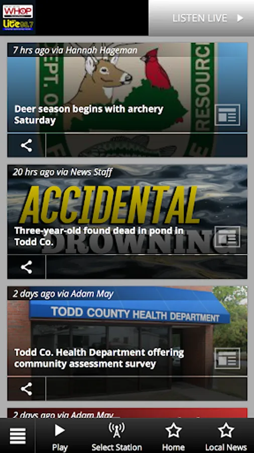 WHOP Radio is Lite 98.7 FM and WHOP NewsRadio 1230 AM/95.3 FM. WHOP Radio calls Hopkinsville, Kentucky home, but WHOP serves communities in most of Western Kentucky and in the Clarksville, Tennessee area. The best Lite Rock music from the 80's, 90's, and Today is found on Lite 98.7 FM. WHOP FM also features The Early Bird Show and University of Kentucky football and basketball. WHOP AM/FM is NewsRadio, featuring The Rush Limbaugh Show and The Sean Hannity Show, along with The Leach Report and Kentucky Sports Radio. WHOP Radio has been on the air over 75 years. Join WHOP mobile for breaking news updates, live streams, contests, and more!