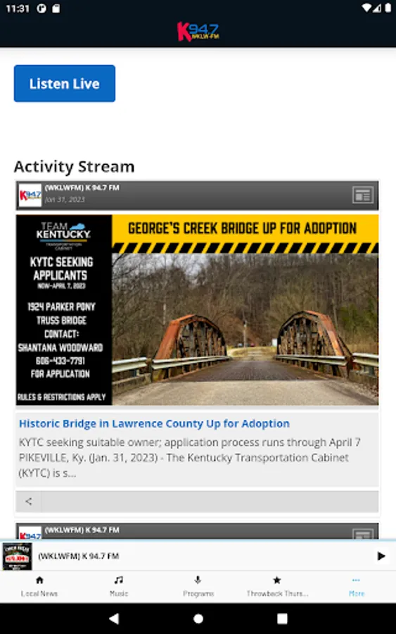 K 94.7 WKLW FM broadcasts from Paintsville, Kentucky and is the exclusive home to the Paintsville High School Tigers. WKLW FM plays the hottest Adult Contemporary hits in the country. Join Adam Preece for Up and At Em' with Adam each weekday morning and each Thursday for Throwback Thursdays. WKLW FM is online at wklw.com, and K 94.7 is on air, online, and on mobile!