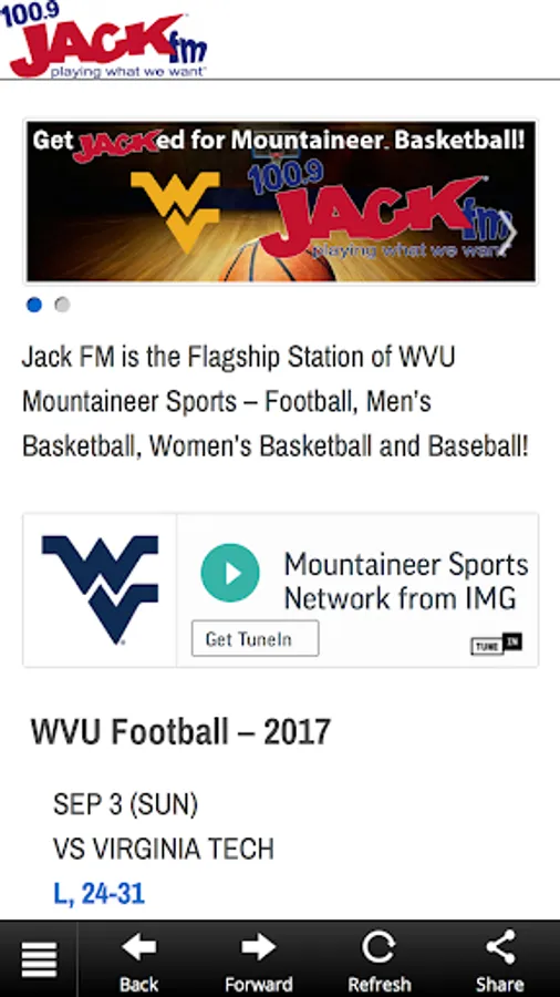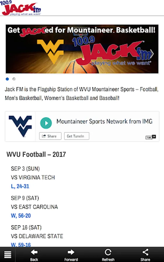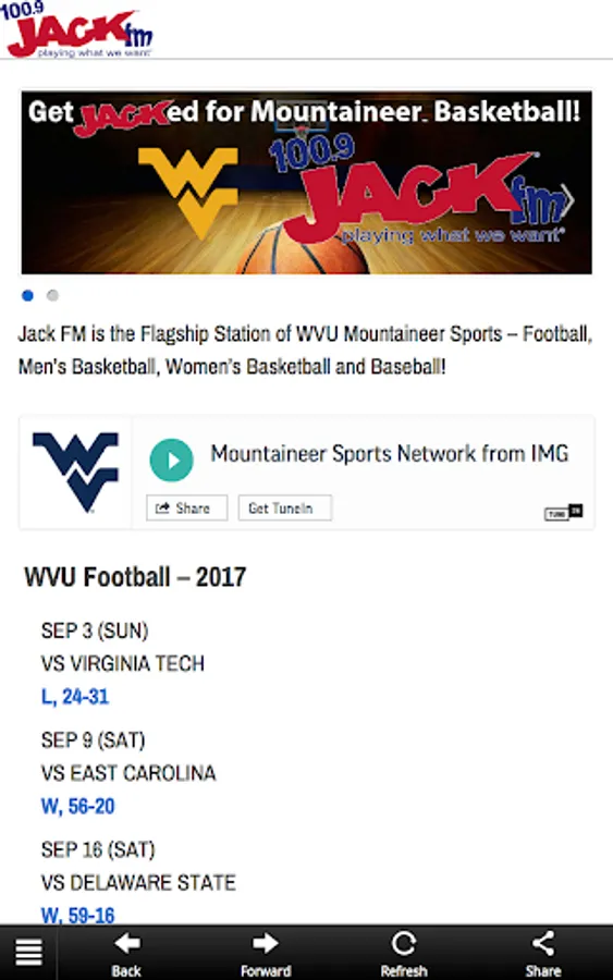 Jack FM (100.9 FM WZST)is Morgantown’s home for the best variety of adult hits; plus, we are THE OFFICIAL FLAGSHIP of West Virginia University! Jack FM has it all when it comes to WVU: Football, Men’s Basketball, Women’s Basketball and Baseball. The home for the Mountaineers and the best music is all right here, 100.9 Jack FM, and streaming online at www.JackFM101.com! Jack FM is licensed to LHTC Media of West Virginia, Inc. To learn more about LHTC Media and its affiliates, visit www.lhtcmedia.com.