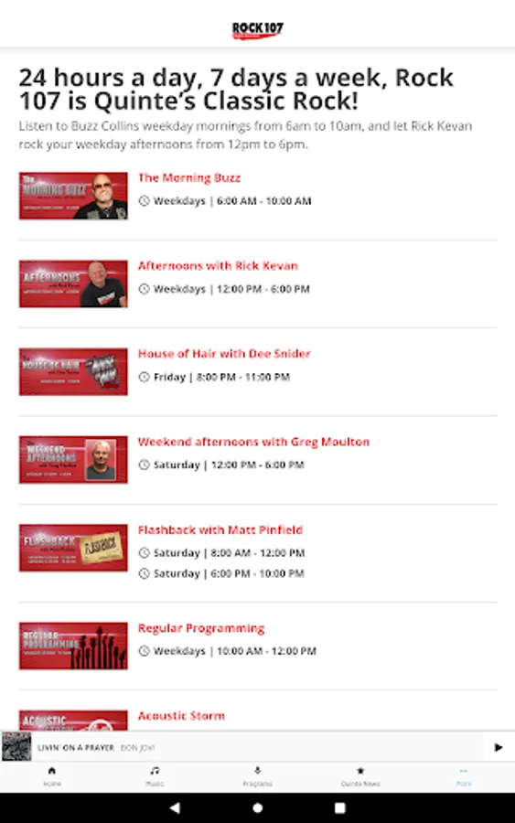Rock 107 is Quinte’s Classic Rock. Remember when you had to be great to get on stage? Go back to the days of Lynyrd Skynyrd, Led Zeppelin, AC/DC and Rolling Stones. Listen to Rock 107 on the go with our app, plus get the latest Quinte News headlines, see what’s played recently and share with your friends!