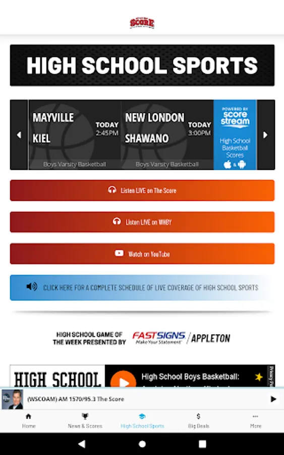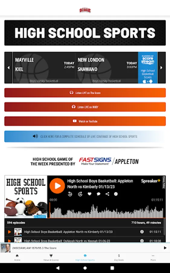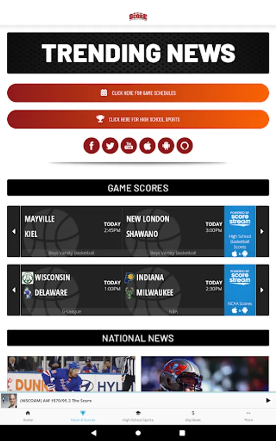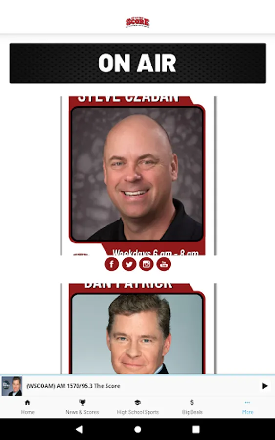 The Score WI has the state’s best sports talk line up. Steve Czaban gets you started in the morning, followed by The Dan Patrick Show. Then it's your national dose of the NFL and all things sports and entertainment with The Rich Eisen Show. Leo and Balky have you covered for a local perspective with The Show and the day wraps up with Drew & K.B. The Score WI is home to available live coverage of the Marquette Golden Eagles, NASCAR, the NCAA tournament, Masters, PGA Championship, NFL & College Football. Plus, the best when it comes to High School sports play-by-play.