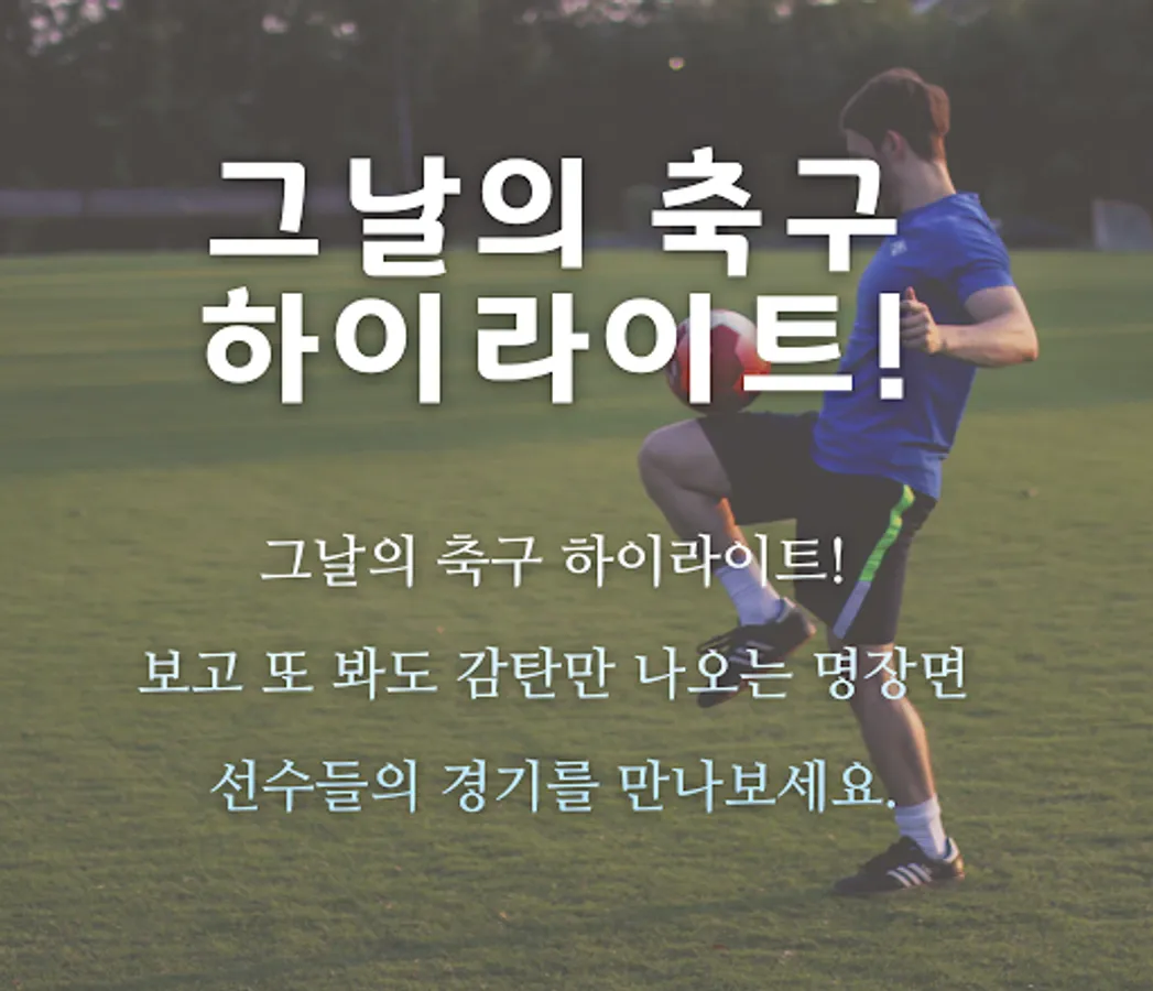 언제 어디나서 이 앱으로 축구 경기를 즐기고 보고 따라 하실 수 있습니다.