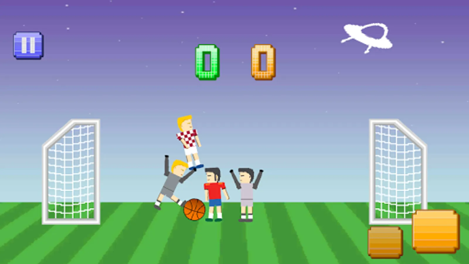 - Very easy to play. There are two button to control the players, one for jump and kick, one for kick only. Get 6 goals to win.
