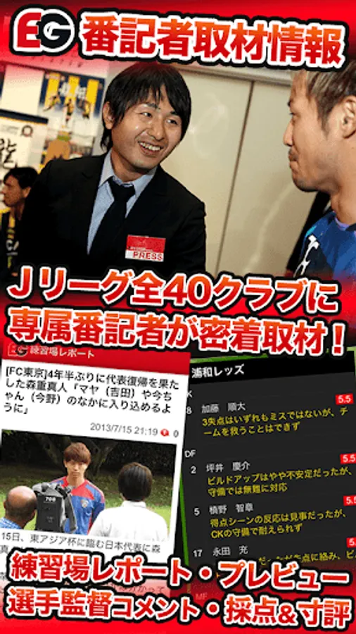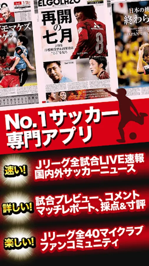 サッカー情報NO.1「速報!サッカーEG」のアプリ! サッカー界のニュースやJリーグ・日本代表戦の試合速報、本格派サッカー専門紙「エルゴラッソ」の記事やJクラブ番記者取材情報、コラムといった読み物系のコンテンツも充実!
